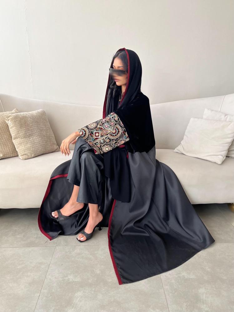 - نوع العباية: عباية سوداء مخمل وتفته