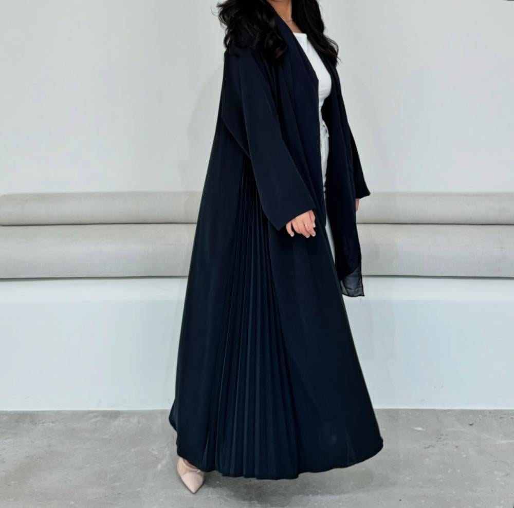عباية كحلية أنيقة بقصة كسرات ناعمة، مصنوعة من قماش لمياء الخفيف، مثالية للإطلالات اليومية في الأجواء الحارة. متوفرة حصريًا عبر متجر عبايات رتال مع خصم وشحن داخل المملكة.